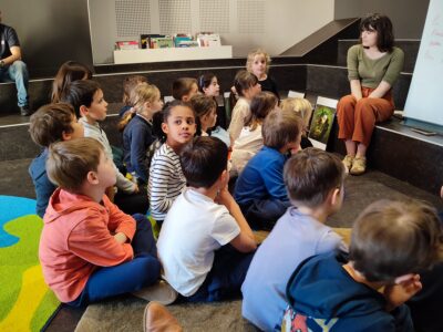 A la médiathèque Geneviève Couteau, les élèves de la classe...
