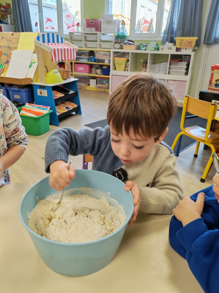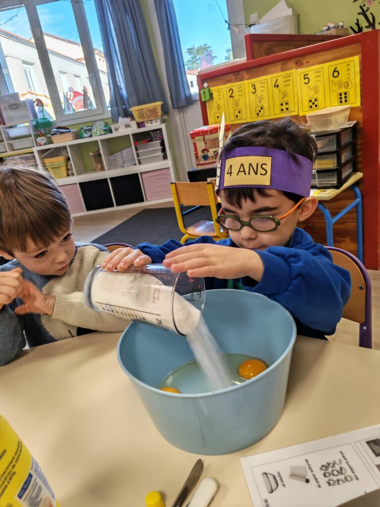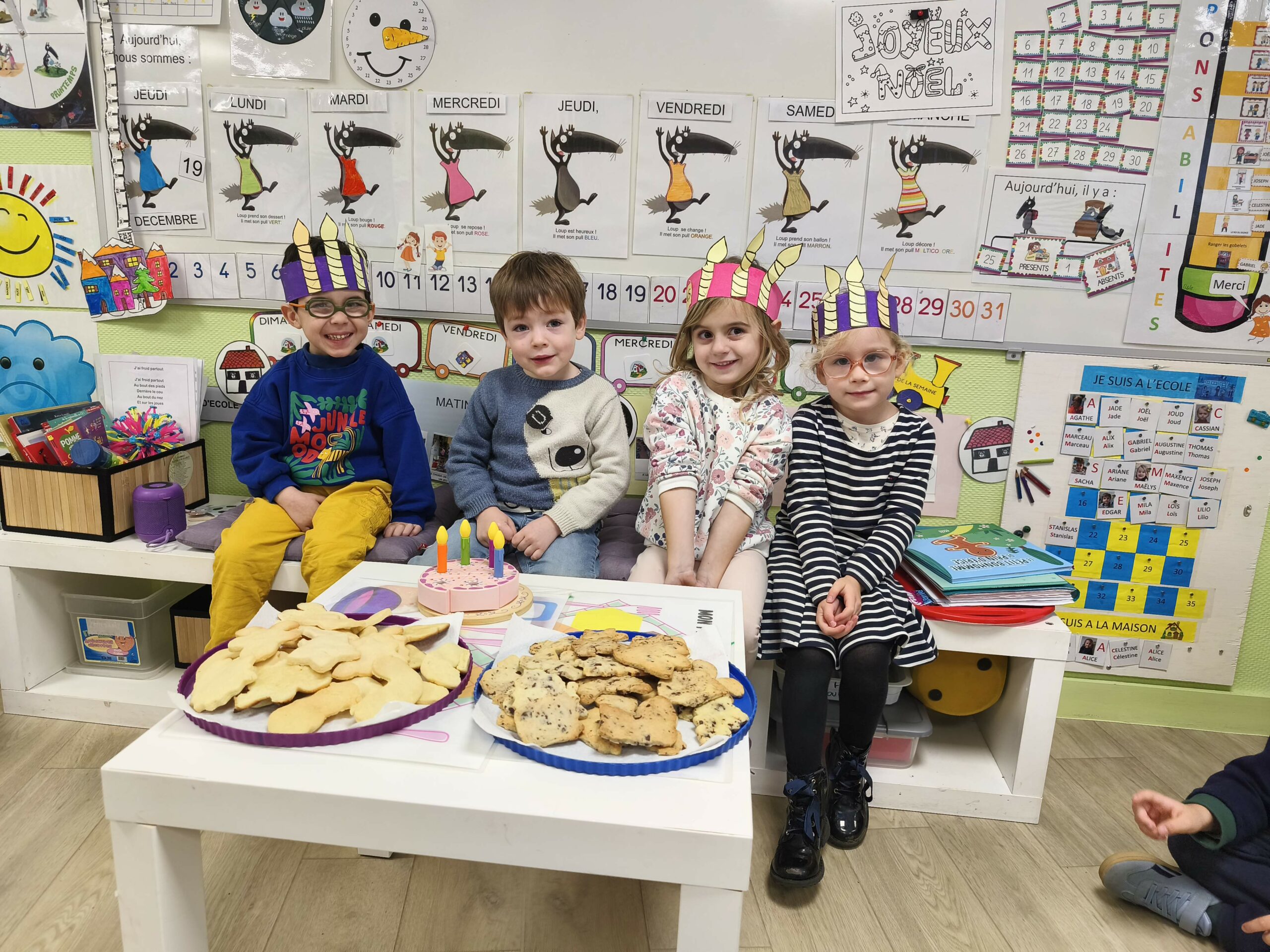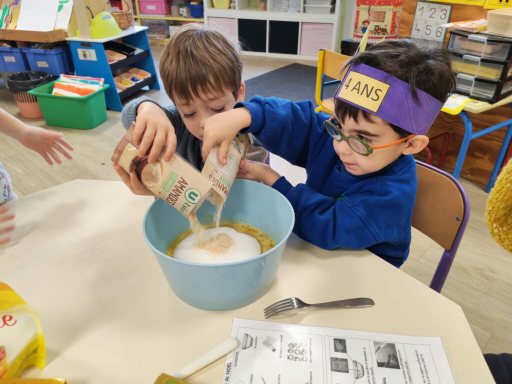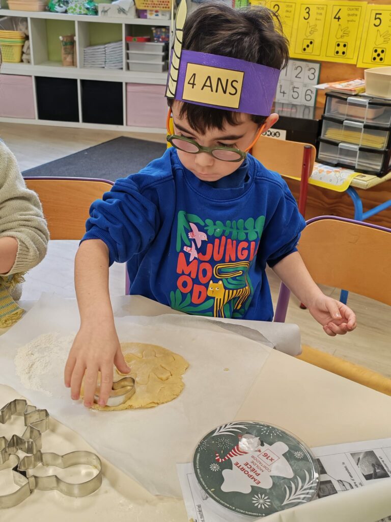 Lilio, Thomas, Augustine et Alix préparent des sablés avec Mélanie pour fêter leurs 4 ans.