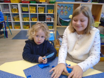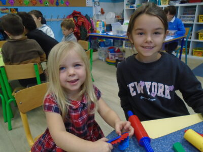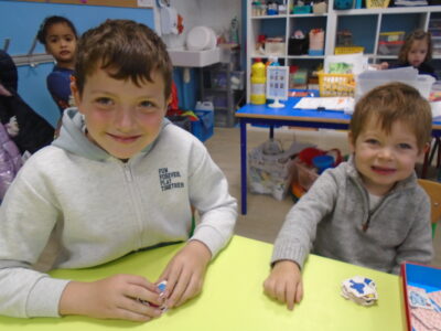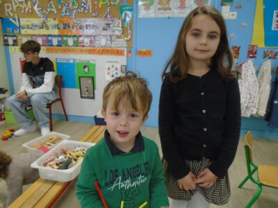 Nous avons fait connaissance de nos « parrains » et « marraines » de CE1 : nous avons fait divers jeux et dernièrement, nous avons préparé les sucettes en chocolat pour le marché de Noël!