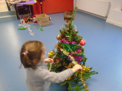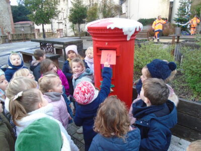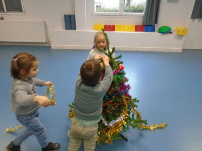 Nous avons décoré notre sapin, les vitres de la classe et nous avons écrit une lettre au père Noël et nous sommes allés la poster à côté de l’école.