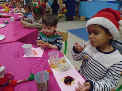 Comme chaque année, nous avons terminé la période avant Noël avec un goûter Réveillon en classe.