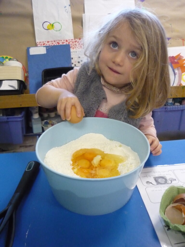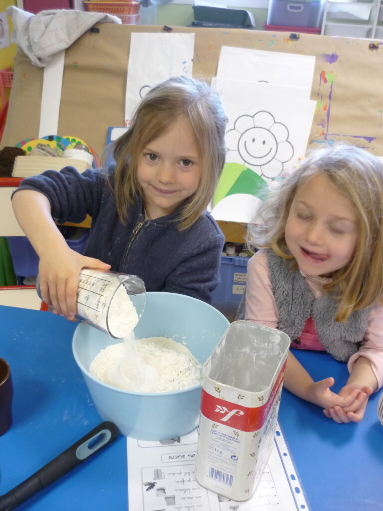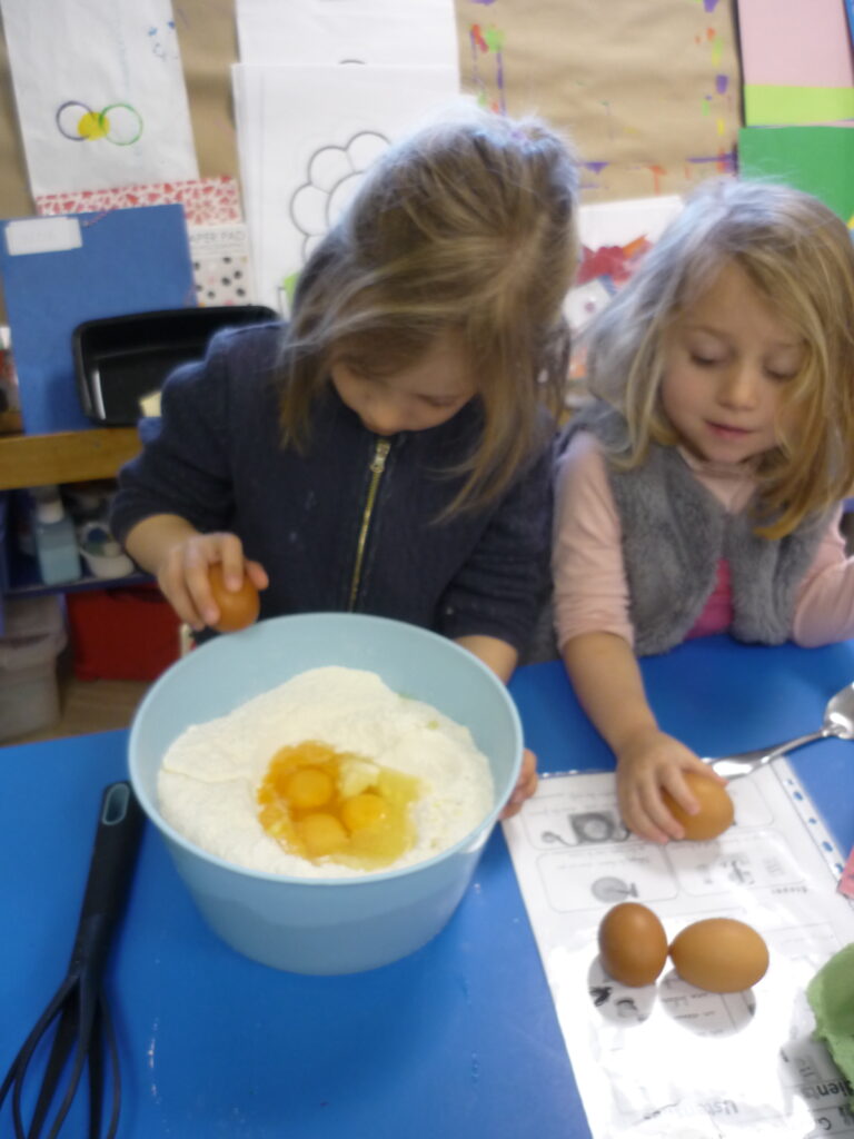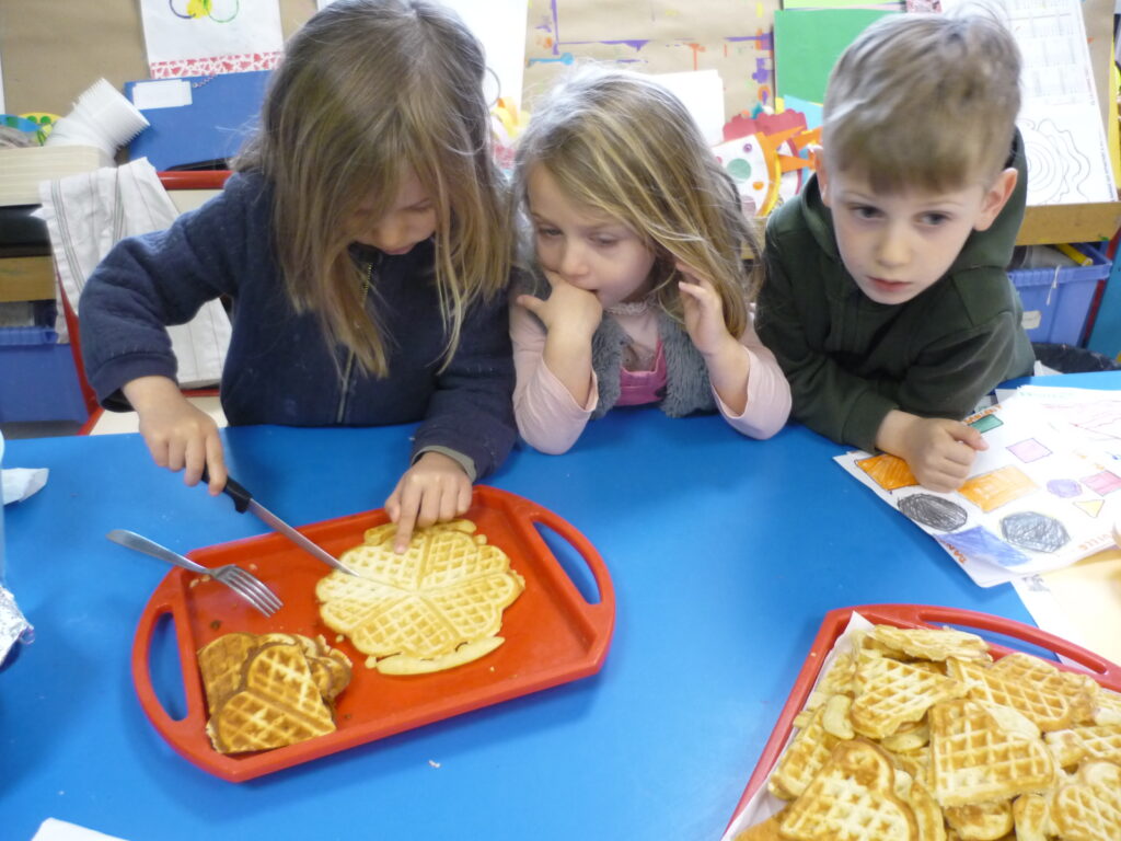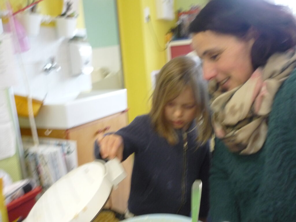 Pour fêter les anniversaires , Alice, Agathe, Joud et Léon ont préparé des gaufres avec l’aide de Mélanie.